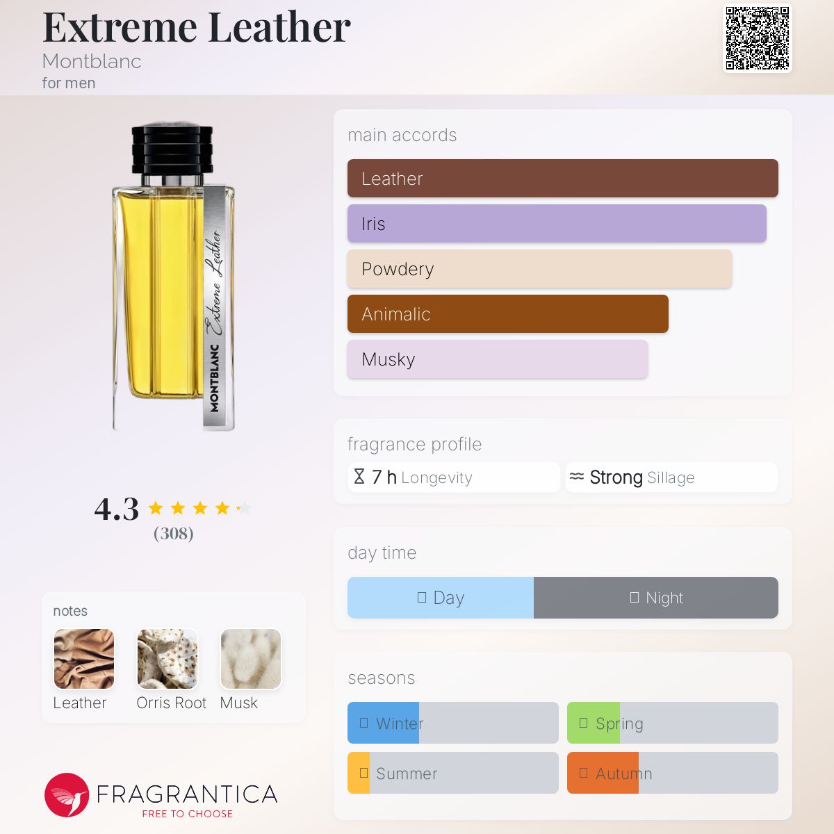 A masculine leather scent with a crisp, stylish edge. Extreme Leather pairs violet leaf and aromatic herbs with smooth leather and woods.